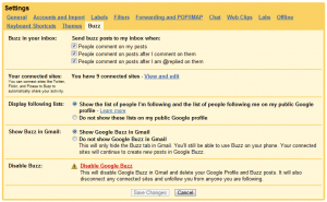 - Go to your Buzz settings located in your Gmail settings. (A screen shot of mine is below)